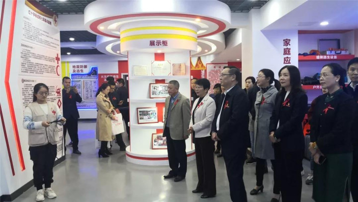 與會領(lǐng)導(dǎo)為紅十字生命教育體驗學(xué)堂揭牌,為衛(wèi)職院的志愿者們頒發(fā)紅十字救護(hù)證、佩戴紅絲帶,并參觀生命教育體驗學(xué)堂。