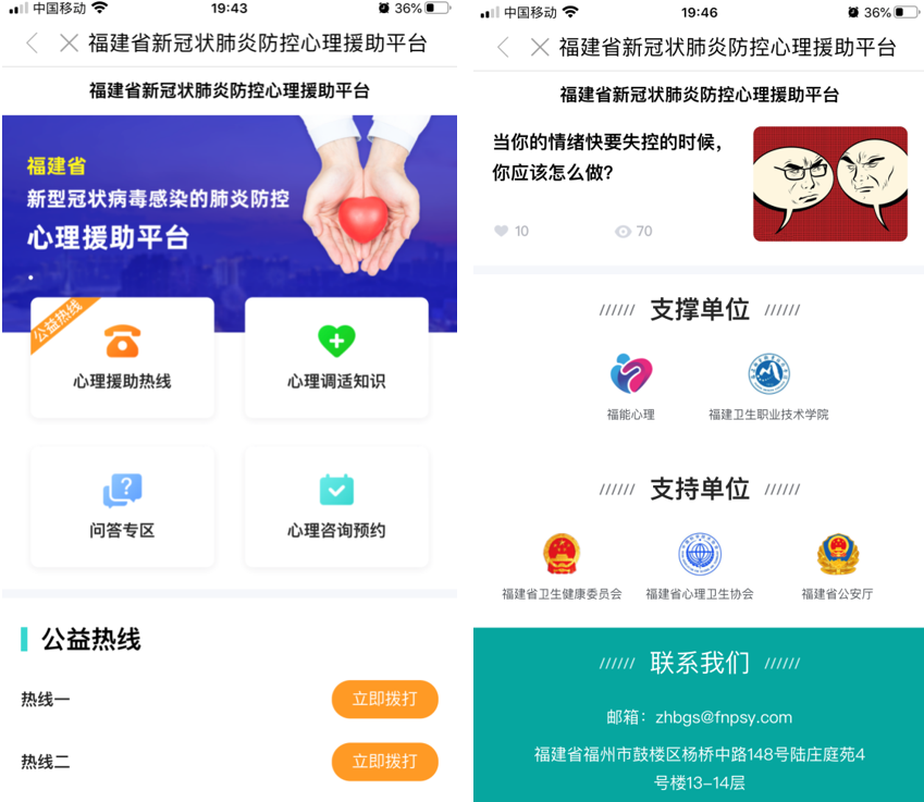 目前,該平臺也加入了由福建衛(wèi)生報牽頭,福建日報、東南網(wǎng)、新福建等共同倡議成立的心理熱線聯(lián)盟。