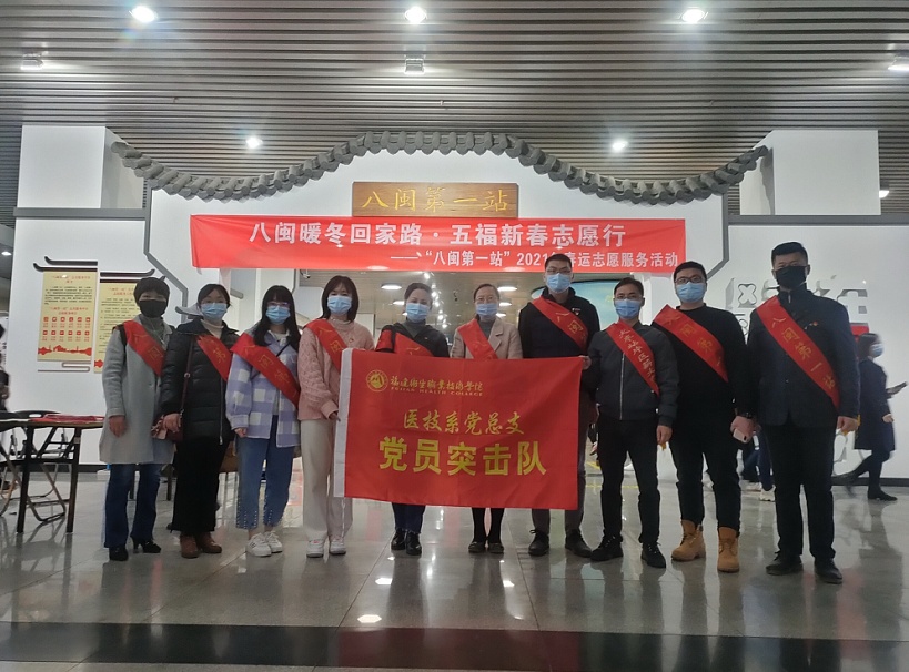 近日,福建衛(wèi)生職業(yè)技術(shù)學(xué)院醫(yī)學(xué)技術(shù)系黨總支組織9名教師黨員前往福州火車站(北廣場),參加由“八閩第一站”主辦的“八閩暖冬回家路·五福新春志愿行”2021 年春運(yùn)志愿服務(wù)活動(dòng),發(fā)揮黨員的先鋒模范作用,助力春運(yùn),筑牢疫情防控防線。