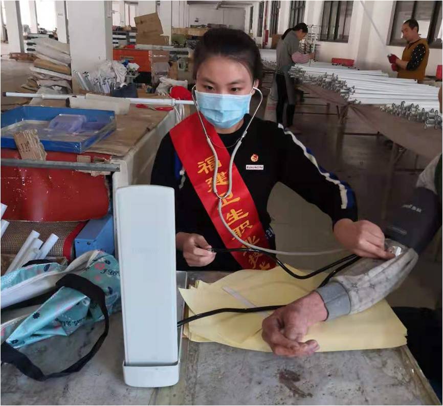 王慧參加志愿活動(dòng)為工人們測量血壓。受訪者供圖