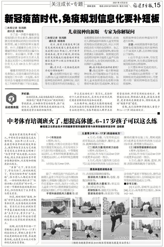 從本期開始,福建衛(wèi)生報特邀福建衛(wèi)生職業(yè)技術學院健康管理系體育保健專業(yè)的老師們,為各年齡段人群開具具有普適性的、科學實用的運動處方。希望通過運動,幫助病人康復,提高生活質量,更重要的是強健身體,預防疾病,推動“健康中國”建設。