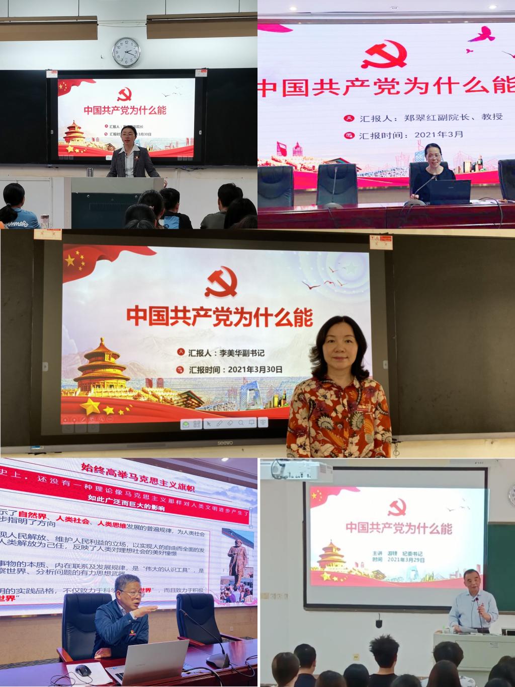 黨委副書記李美華、紀委書記游鋒、副院長陳貞健、黃銘珊、鄭翠紅等校領(lǐng)導從中國共產(chǎn)黨具有科學的理論指導、堅定的理想信念、強大的組織優(yōu)勢、堅實的群眾基礎(chǔ)、徹底的自我革命等五個方面,全面闡述了中國共產(chǎn)黨創(chuàng)造中國奇跡的原因所在。校領(lǐng)導的開講,引起了我校師生的廣泛熱議。