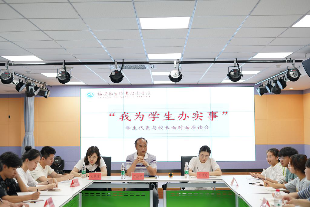 5月20日下午,福建衛(wèi)生職業(yè)技術(shù)學(xué)院校學(xué)生會(huì)在團(tuán)委青年之家舉辦“我為學(xué)生辦實(shí)事”黨史教育實(shí)踐活動(dòng)調(diào)研暨院長(zhǎng)許能鋒與學(xué)生代表面對(duì)面座談會(huì)。活動(dòng)從第五次學(xué)生代表大會(huì)的代表中隨機(jī)抽取35名學(xué)生與校長(zhǎng)共話校園事,共議學(xué)校發(fā)展。