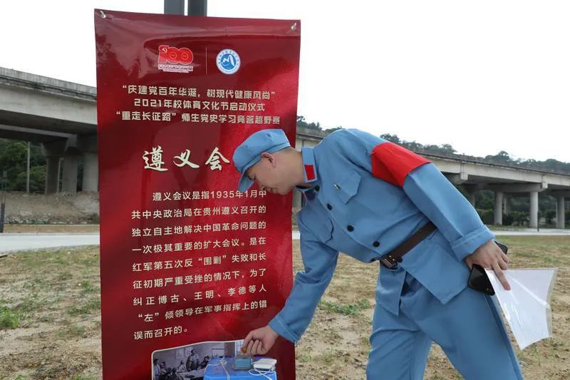 這次比賽設(shè)置了43個打卡點,其中大型的打卡點分別以“湘江”、“赤水”、“金沙江”、“瀘定橋”、“岷山”等紅軍長征中的重大歷史事件發(fā)生地貫穿,將紅色文化、紅色精神融入到越野賽的全過程,讓師生身臨其境地走進(jìn)黨史,觸摸黨史。