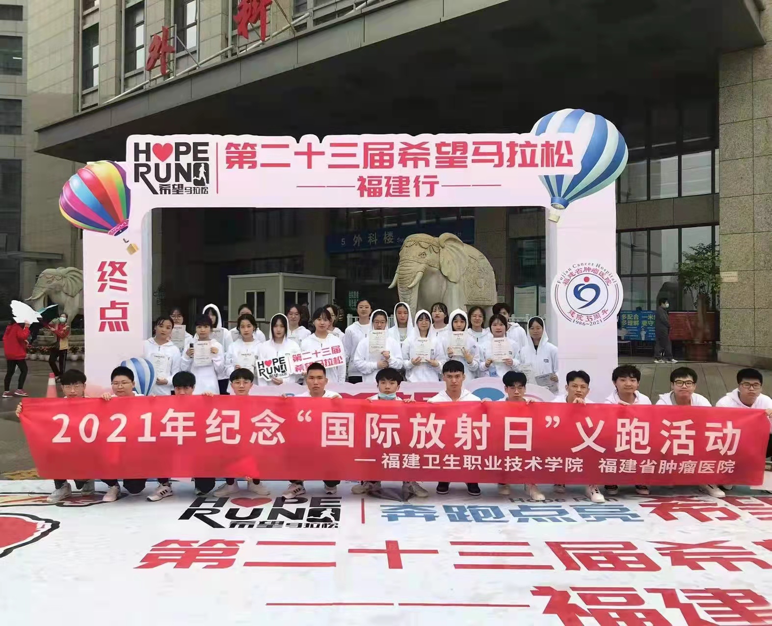 愛心義跑,點亮希望。11月6日,第二十三屆希望馬拉松(福建行)活動在福建省腫瘤醫(yī)院鳴槍開跑,學校醫(yī)學技術系放療班學子同社會愛心人士一起義跑,并積極參加賽會的志愿服務工作?,F(xiàn)場舉行了癌癥防治宣傳和咨詢活動,學子們身穿白衣,歌唱《我和我的祖國》,呼吁社會更多關注癌癥防治事業(yè),筑夢健康福建。
