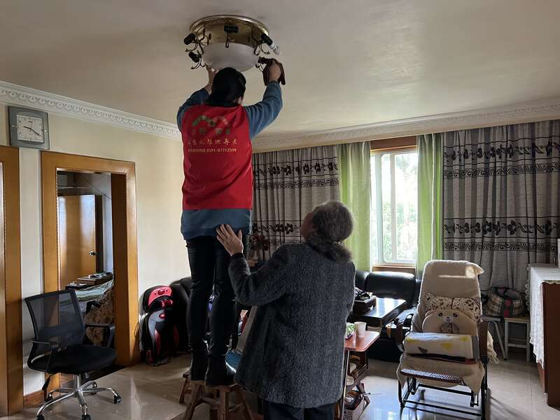 “她不僅幫我打掃衛(wèi)生,還陪我聊天。”家住福州市倉山區(qū)對湖街道的詹壽珍老人,幫扶站在椅子上擦燈泡的助老員江霞梅,還不住地夸贊她。
