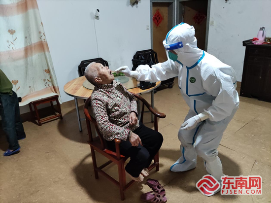 化身“大白”,入戶為出行不便的老年人做核酸檢測(cè)。 蔡鋆澤 張曉燕 供圖