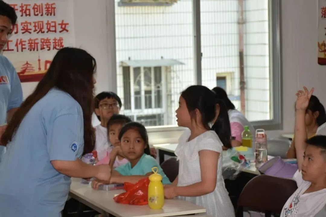 在社區(qū)夏令營,福建衛(wèi)生職業(yè)技術(shù)學(xué)院學(xué)生向兒童普及艾滋病預(yù)防知識。
