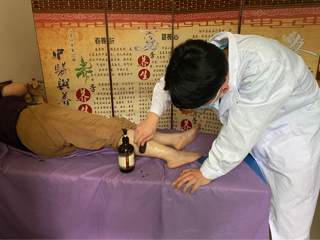 圖為幫助村民刮痧,起到活血化淤,補(bǔ)中益氣的作用。中國青年網(wǎng)通訊員 趙夢(mèng)雅 攝