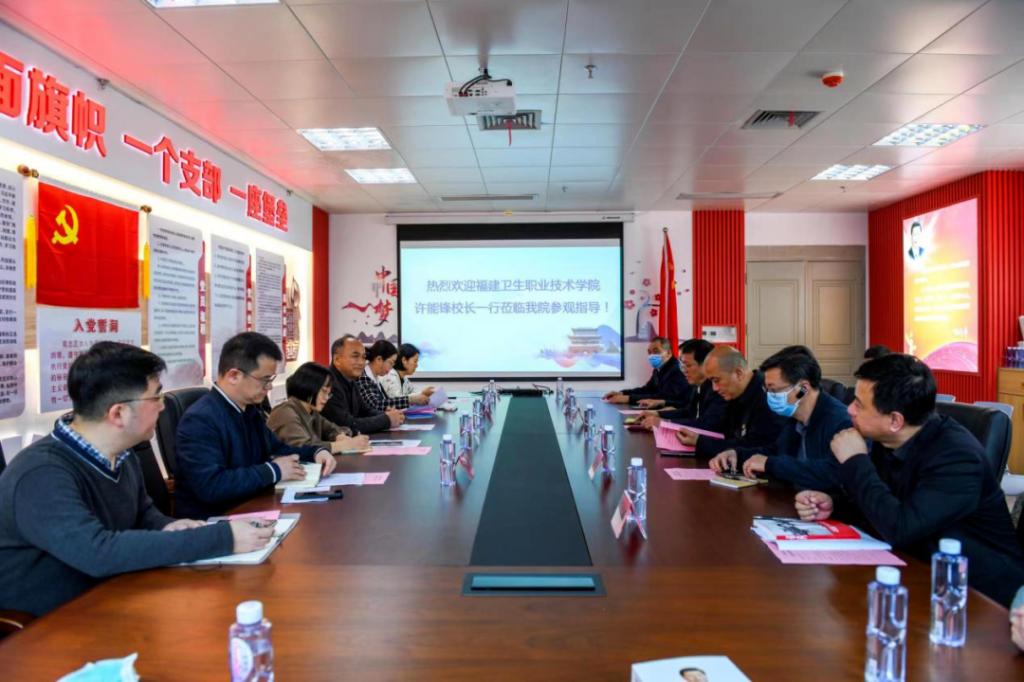 近日,福建衛(wèi)生職業(yè)技術(shù)學(xué)院院長(zhǎng)許能鋒、副院長(zhǎng)黃銘珊一行到建甌市總醫(yī)院開展訪企拓崗促就業(yè)調(diào)研。市委常委、宣傳部部長(zhǎng)葉華陪同調(diào)研,市總醫(yī)院(市立醫(yī)院)院長(zhǎng)黃榮彬,市總醫(yī)院副院長(zhǎng)、中西醫(yī)結(jié)合醫(yī)院院長(zhǎng)張濤,市總醫(yī)院(市立醫(yī)院)、市中西醫(yī)結(jié)合醫(yī)院領(lǐng)導(dǎo)班子成員及相關(guān)職能科室負(fù)責(zé)人一同參加。調(diào)研組一行先后參觀了市中西醫(yī)結(jié)合醫(yī)院住院部、門診部及醫(yī)養(yǎng)結(jié)合大樓,市立醫(yī)院內(nèi)兒科大樓、臨床技能培訓(xùn)中心,并分別在市中西醫(yī)結(jié)合醫(yī)院、市立醫(yī)院召開座談會(huì)。