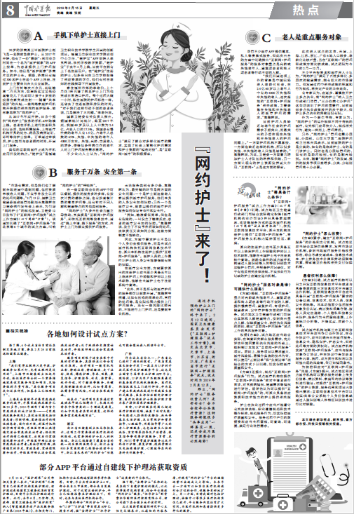 不少業(yè)內(nèi)人士認(rèn)為,“網(wǎng)約護(hù)士”滿足了群眾對(duì)多樣化醫(yī)療的需求,實(shí)現(xiàn)了社會(huì)上零散化護(hù)理需求和護(hù)士資源的“精準(zhǔn)對(duì)接”,是“互聯(lián)網(wǎng)+醫(yī)療”的積極探索。