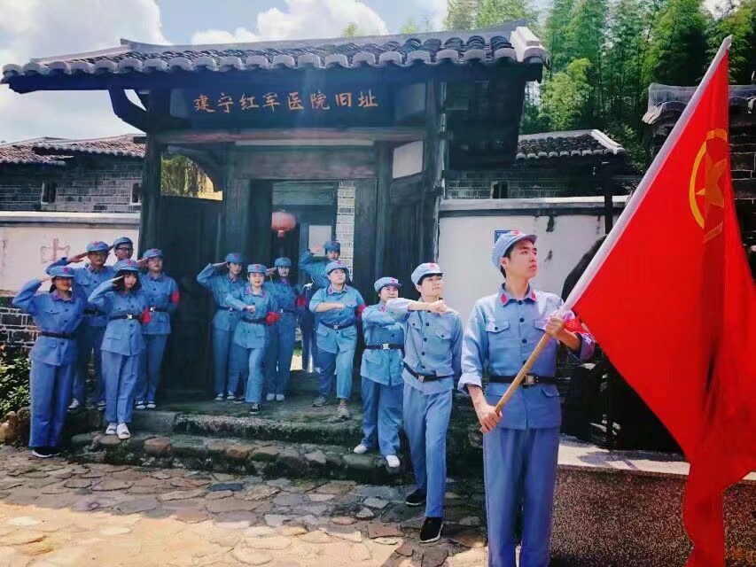 “建寧中央蘇區(qū)是閩西北革命根據(jù)地的中心,第二次國內(nèi)革命戰(zhàn)爭時期在這塊古老的土地上演繹了一曲曲感天動地的革命壯歌……”在中共建寧縣委黨校寧美德老師的引導(dǎo)下,隊員們學(xué)習(xí)建寧蘇區(qū)史,探秘“紅色小井岡”。隊員們實地考察了建寧中央蘇區(qū)反“圍剿”紀(jì)念園和閩贛基干游擊隊司令部舊址等,并穿上紅軍服,扛起團旗,重走紅軍路,踏上新征程。