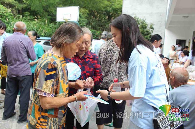 成員們正在為老人們分發(fā)常用藥品,老人們都很是感激。中國青年網(wǎng)通訊員 吳雪兒 攝