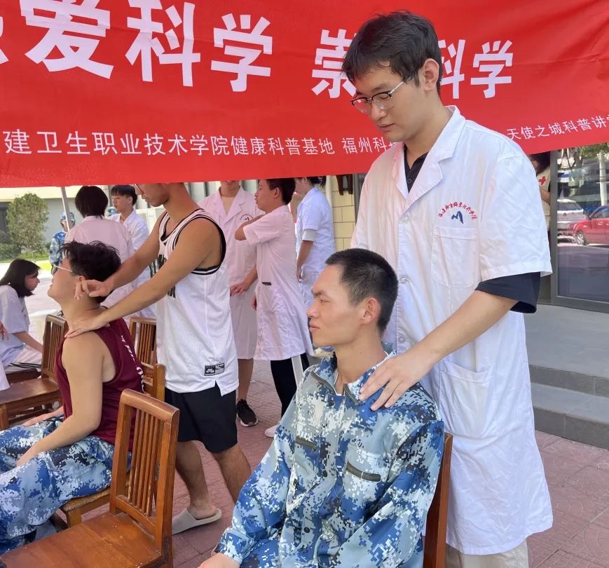 9月17日上午,福建衛(wèi)生職業(yè)技術(shù)學(xué)院20名志愿者在紅十字生命教育科學(xué)館門口開展了校內(nèi)義診活動(dòng)。