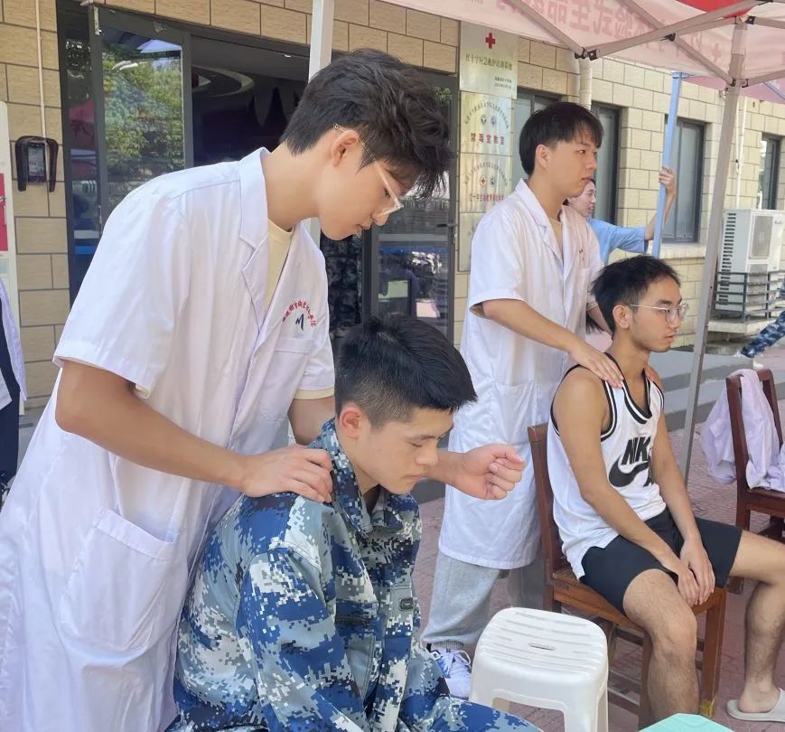 本次活動(dòng)的重頭戲以推拿為主。志愿者們用手指掌心等部位按摩同學(xué)們的穴位,通過推拿手法來調(diào)理身體的氣血流動(dòng)。剛下訓(xùn)的“萌新”在推拿的過程中表現(xiàn)出了明顯的放松和舒適感。