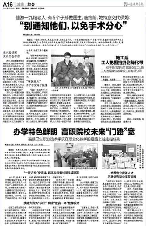“老師會(huì)以臨床的真實(shí)案例為導(dǎo)向,傳授給我們技能技術(shù),而這些技能知識使我在工作崗位上‘無縫對接’,很快地上手和適應(yīng)?!?014級助產(chǎn)專業(yè)的張程依對記者說。目前,她就職于福建省立醫(yī)院。
