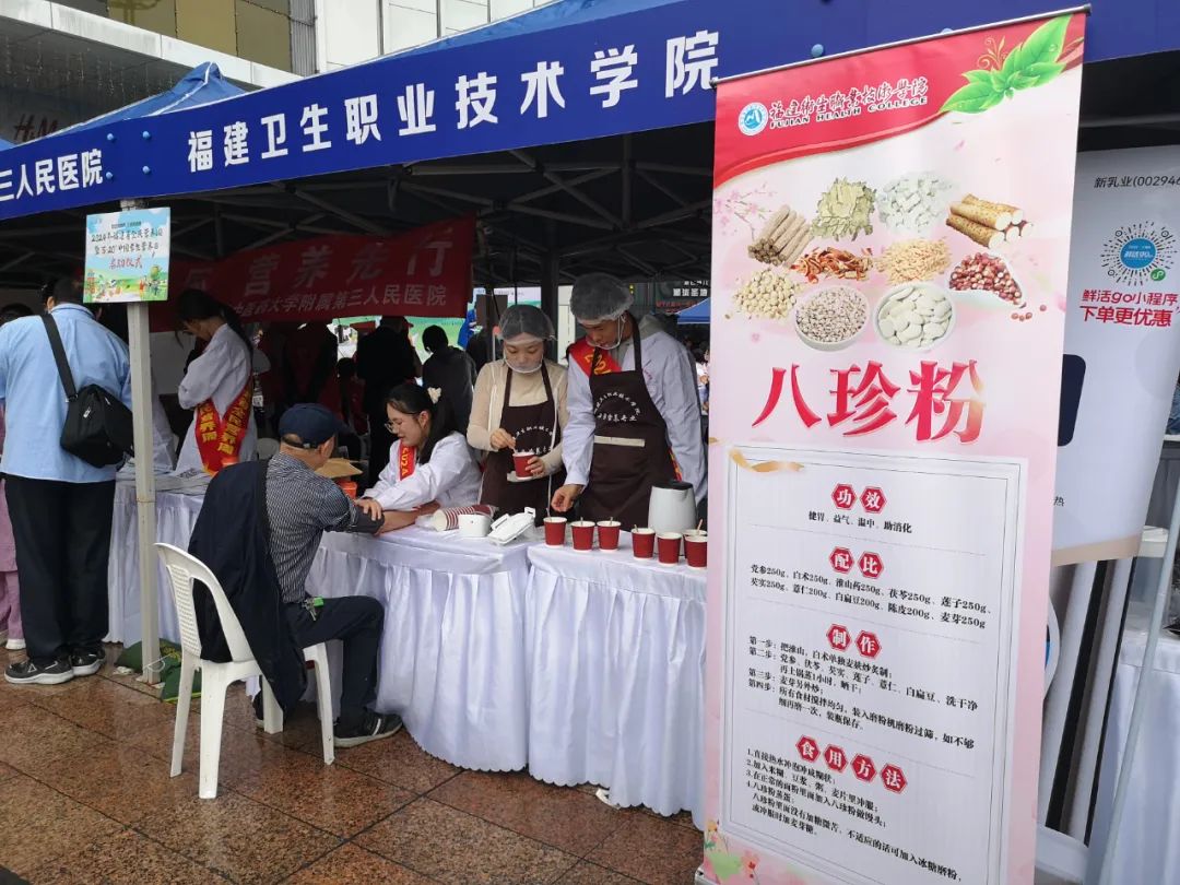 福建中醫(yī)藥大學(xué)附屬第三人民醫(yī)院帶來(lái)了自主研發(fā)的茶飲、藥膳等,以及糖尿病、腫瘤與營(yíng)養(yǎng)宣傳單。
