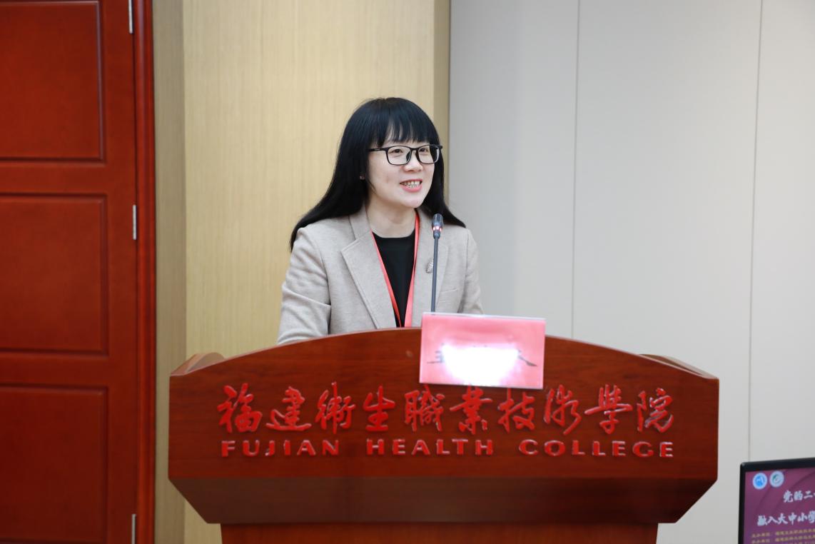 (圖:福建衛(wèi)生職業(yè)技術(shù)學(xué)院馬克思主義學(xué)院黨總支書記、院長熊美蘭主持活動)