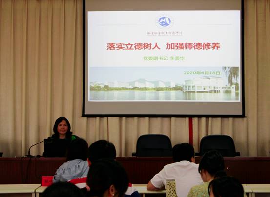 6月18日下午,我院舉辦師德師風專題講座。學院黨委副書記李美華應邀作專題講座,近年新進教師及專任輔導員代表共50多人聆聽了講座。