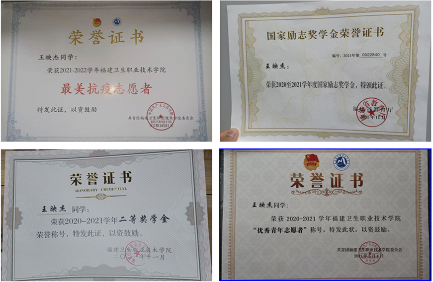 王映杰同學(xué)的學(xué)習(xí)成績也很優(yōu)秀,曾獲2020—2021學(xué)年國家勵志獎學(xué)金、校級二等獎學(xué)金和?!皟?yōu)秀共青團(tuán)員”稱號。
