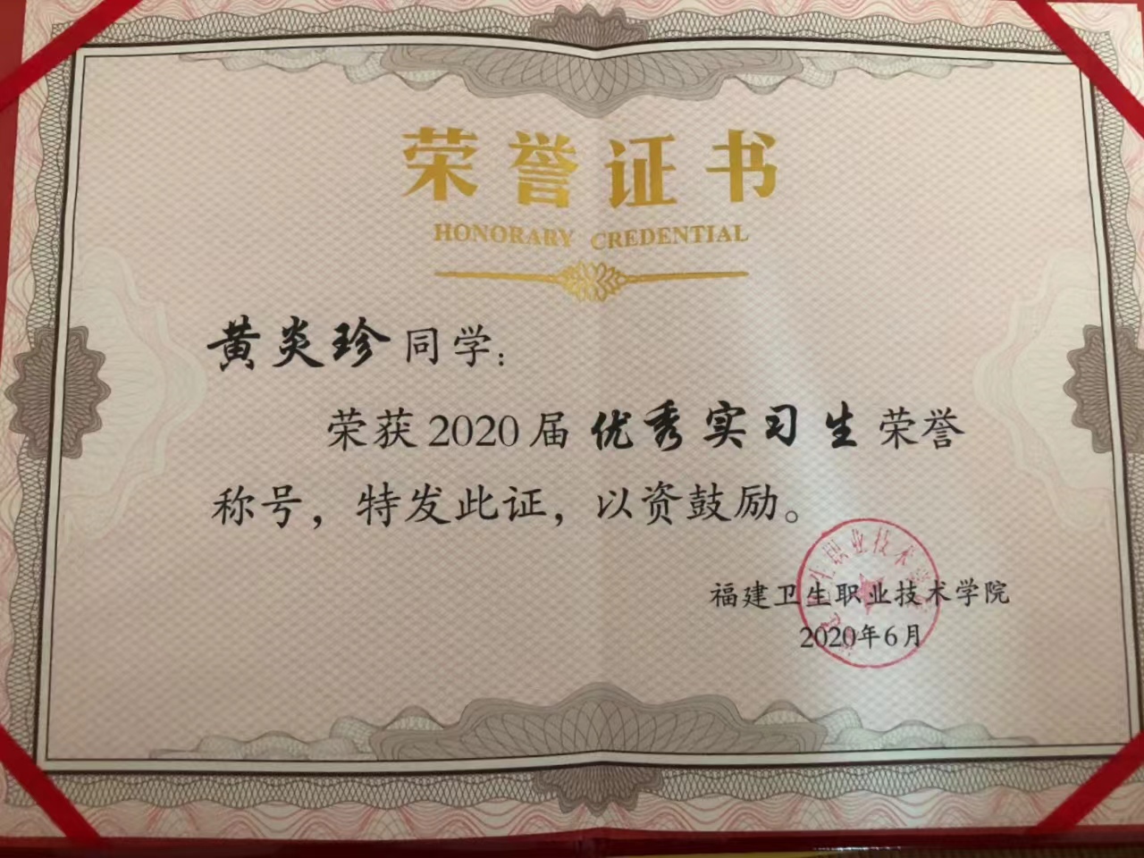吳鋒老師:黃炎珍同學(xué)為人誠(chéng)懇,謙虛,樸實(shí)無(wú)華,思想積極上進(jìn),身處逆境,卻永不退縮。從中職入學(xué)的青澀小姑娘變成了現(xiàn)在成熟干練的省賽一等獎(jiǎng)獲得者,一路成長(zhǎng),離不開(kāi)她敢想、敢為、敢說(shuō)、敢問(wèn)的求知精神,相信她憑借著自身的努力奮斗與拼搏,會(huì)成為一名優(yōu)秀的新一代護(hù)理人。