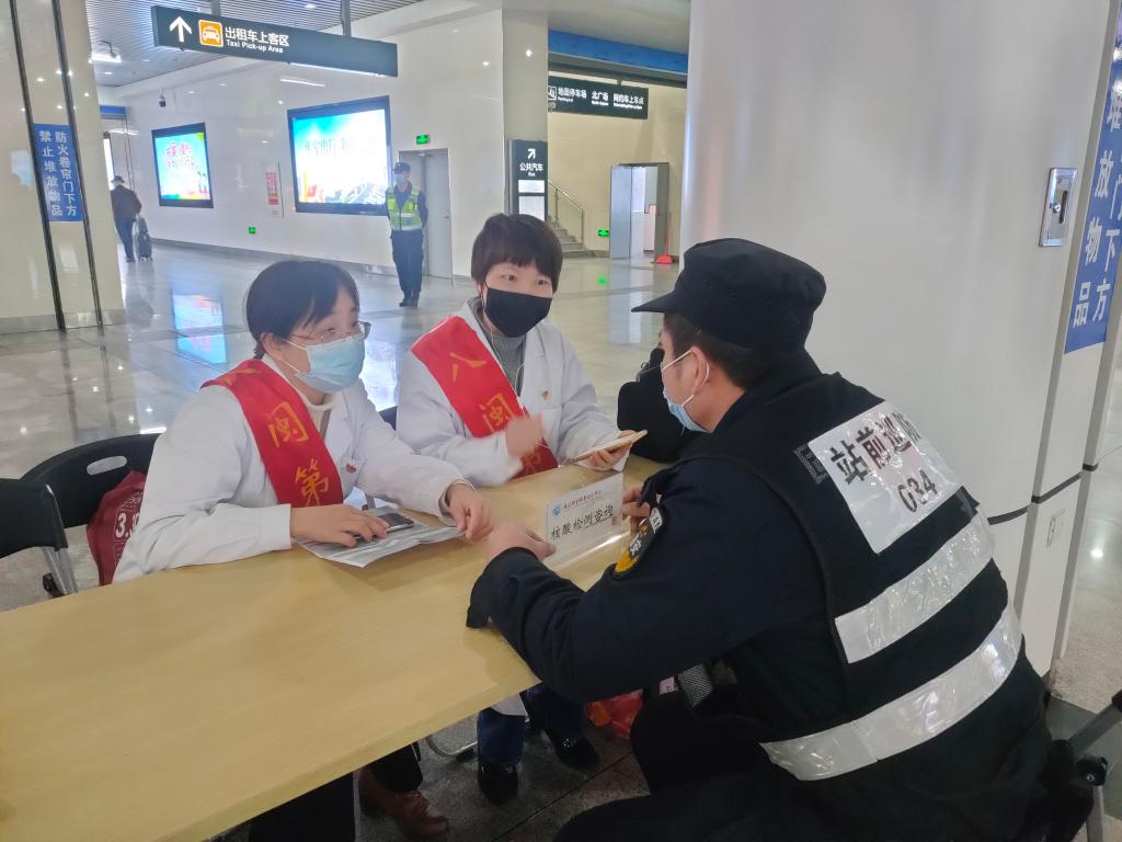 在活動(dòng)現(xiàn)場(chǎng),“雙帶頭人”第一黨支部書記彭臻菲結(jié)合專業(yè)特長(zhǎng)優(yōu)勢(shì),主動(dòng)承擔(dān)核酸檢測(cè)咨詢;現(xiàn)場(chǎng)開(kāi)展疫情防控宣傳,指導(dǎo)返榕旅客如何正確佩戴口罩,如何正確洗手,倡導(dǎo)旅客遵守疫情防控政策,人人爭(zhēng)做疫情防控宣傳員;同時(shí)為返榕旅客送上一份溫情的福禮,內(nèi)含一次性防護(hù)口罩、一次性防護(hù)手套、保暖手套、暖水袋以及疫情防控手冊(cè)或疫情防控宣傳頁(yè)等, 為市民返鄉(xiāng)提供保障。