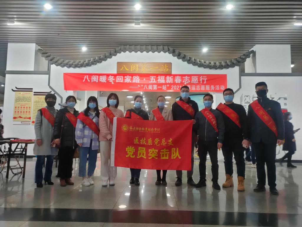 2月2日,我校醫(yī)學(xué)技術(shù)系黨總支組織9名教師黨員前往福州火車站(北廣場(chǎng)),參加由“八閩第一站”主辦的“八閩暖冬回家路·五福新春志愿行”2021年春運(yùn)志愿服務(wù)活動(dòng),發(fā)揮黨員的先鋒模范作用,助力春運(yùn),筑牢疫情防控防線。