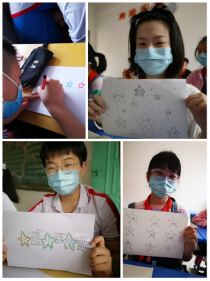 為了更好地跟學生互動,余彩云老師與鄭梅欽老師分工合作,一個專心在線講授,一個線下關(guān)注學生的現(xiàn)場表現(xiàn),根據(jù)學生的情況進行有針對性地指導。輕松的游戲互動和親切的教學模式讓學生耳目一新,快樂地參與其中,表達了自己返校復學的五彩心情。