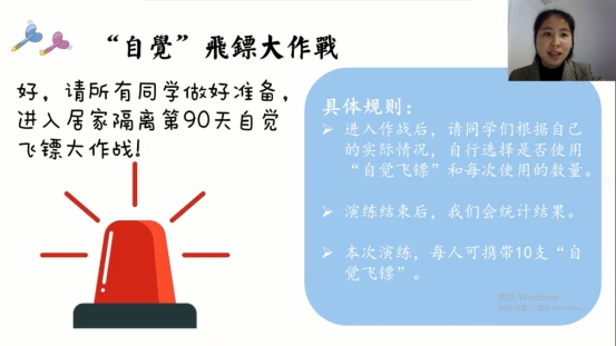在學生的時間管理方面,夏雪梅老師首先通過“自覺飛鏢大作戰(zhàn)”的游戲,給各位同學們設置起床、專心做作業(yè)、認真聽網(wǎng)課等六個居家情境,來測試同學們的自覺以及時間管理的情況,而后通過講授時間管理四象限法則,提醒同學們重要不緊急的事情要有準備的做,不重要不緊急的事穿插著做,最后也鼓勵大家根據(jù)四象限法則制作自己的時間作息表。