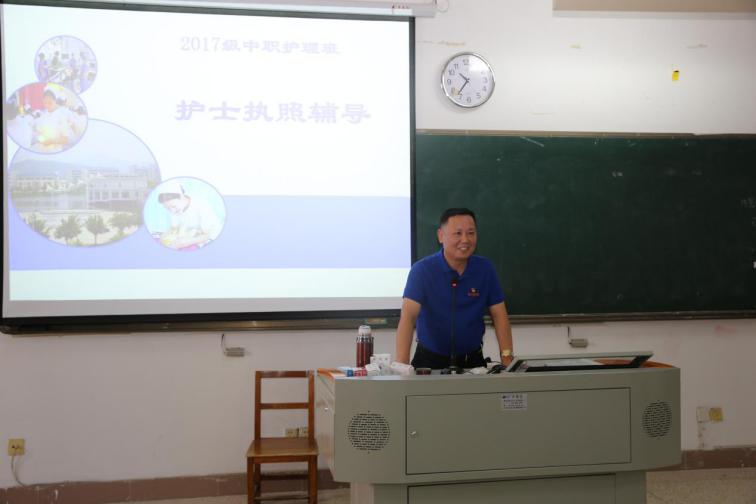 學(xué)院領(lǐng)導(dǎo)高度重視精準(zhǔn)扶貧班學(xué)生的護(hù)考培訓(xùn),到班級與學(xué)生親切交談,為他們加油助威。學(xué)院黨委書記曾武祈用四個熱愛“熱愛生活、熱愛學(xué)習(xí)、熱愛工作、熱愛家國”激勵學(xué)生好好學(xué)習(xí)。