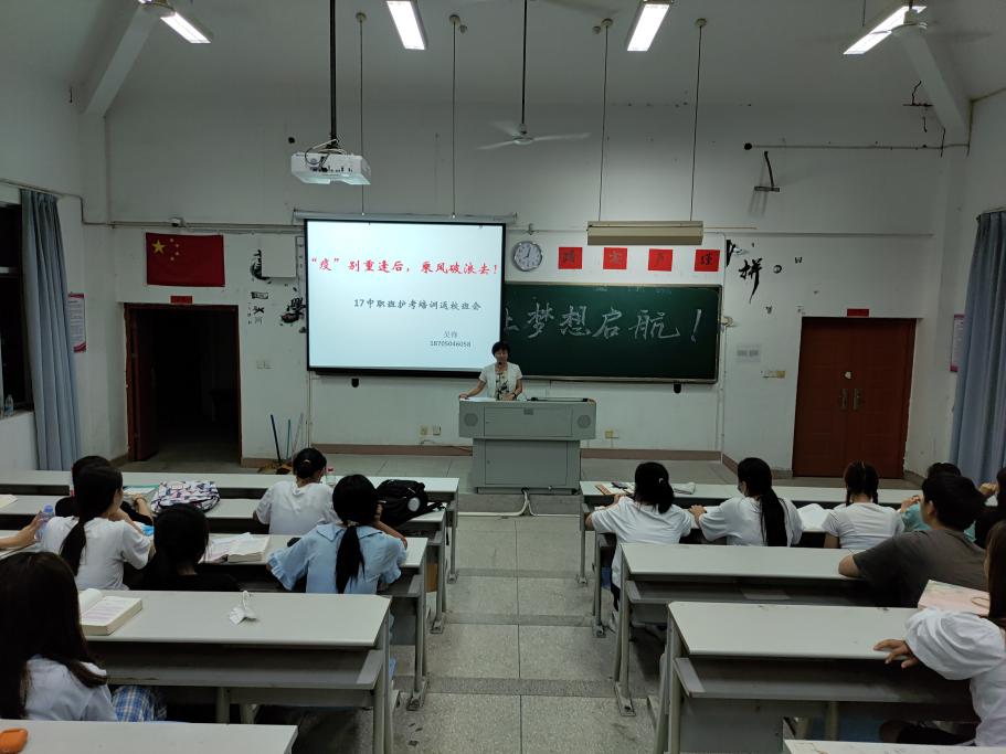 學(xué)生返校當(dāng)天,迅速召開“17級護(hù)理中職班護(hù)考培訓(xùn)”動員大會,對同學(xué)參加線下培訓(xùn)提出殷切希望和具體要求。