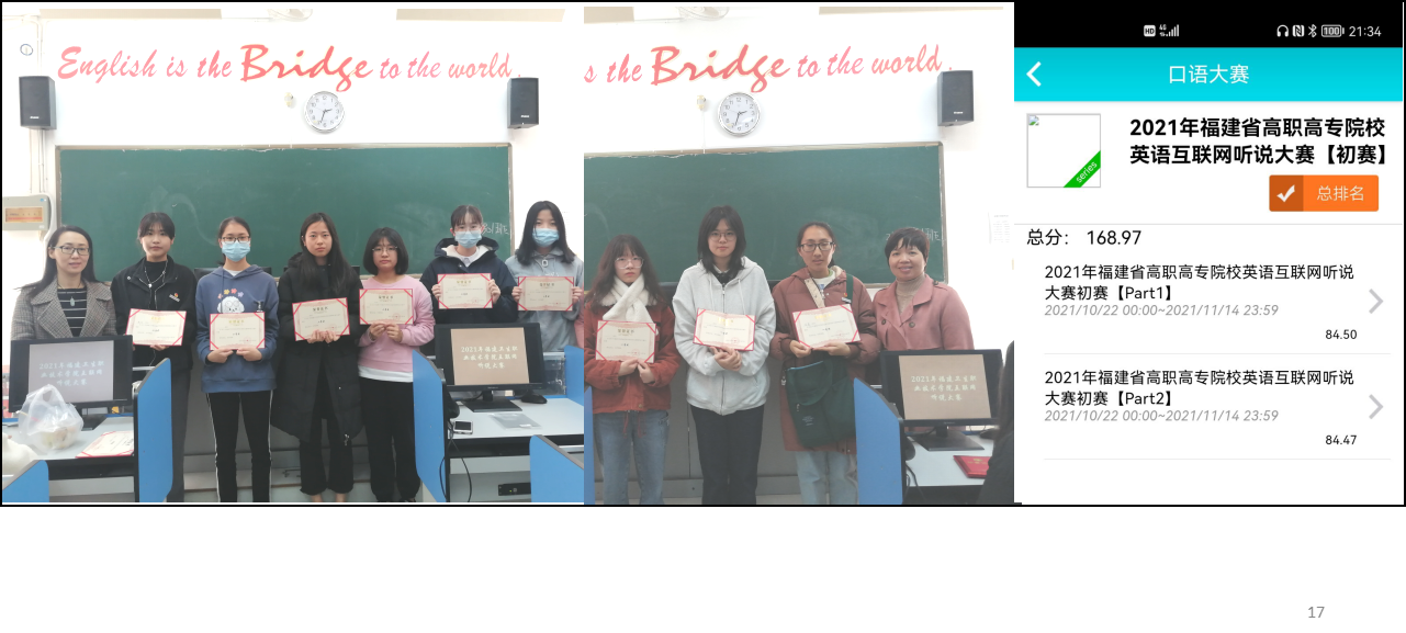 10月23日至11月24日, “2021年福建省高職高專院校英語互聯(lián)網(wǎng)聽說大賽”順利舉辦,來自全省十余所高職院校的7000多名選手參加比賽。