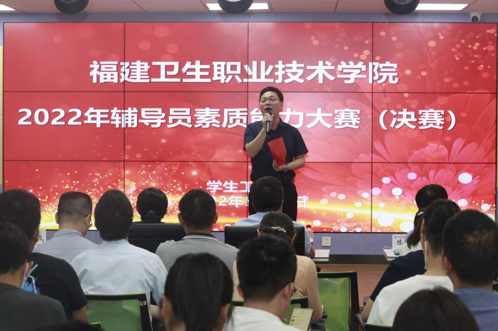 5月31日上午,福建衛(wèi)生職業(yè)技術(shù)學(xué)院2022年輔導(dǎo)員素質(zhì)能力大賽決賽在我校青年之家多功能廳成功舉辦。大賽邀請福建信息職業(yè)技術(shù)學(xué)院黨委副書記王興中、福建農(nóng)業(yè)職業(yè)技術(shù)學(xué)院學(xué)生工作部部長陳曉波、福建師范大學(xué)法學(xué)院黨委副書記周延鋒、我校副校長黃銘珊、宣傳部部長宋維擔(dān)任評委,校黨委書記曾武祈,學(xué)生工作部、團(tuán)委、馬克思主義學(xué)院等部門負(fù)責(zé)人,各院系黨總支書記、副書記及全體專職輔導(dǎo)員觀摩了比賽。