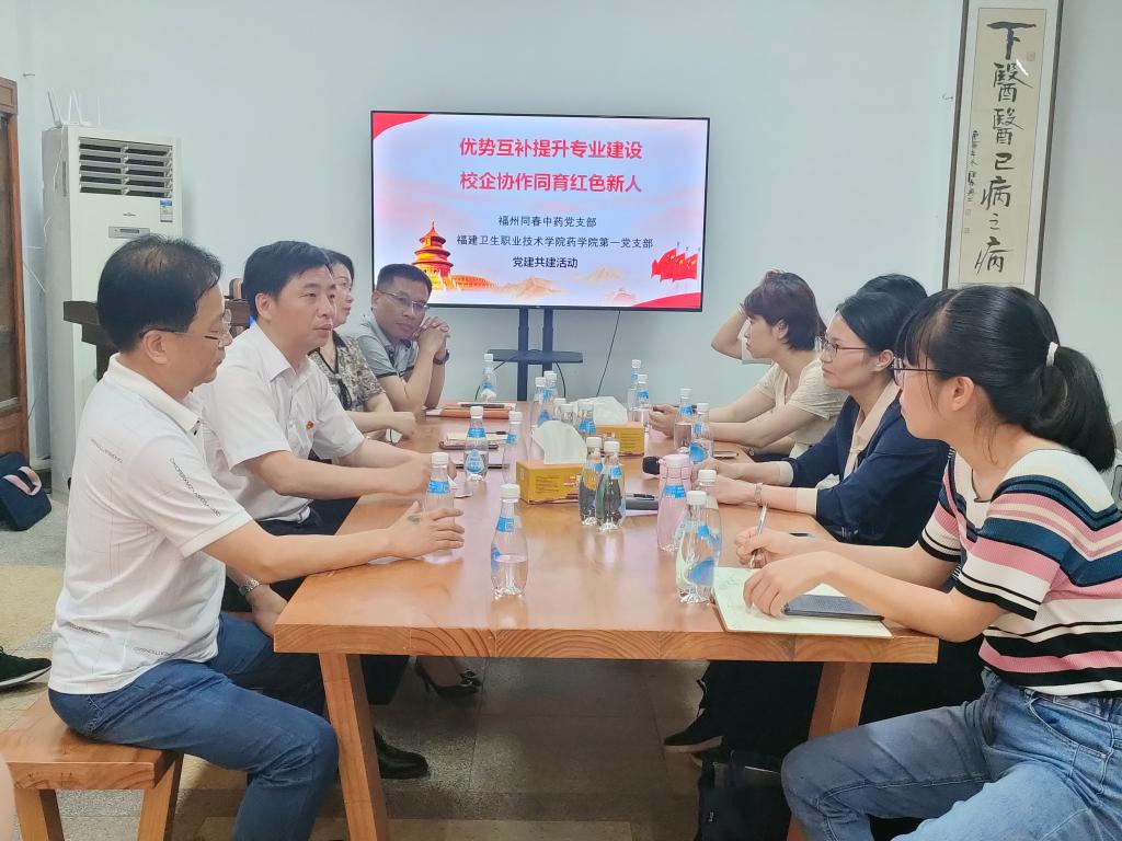 為進(jìn)一步深化產(chǎn)教融合,推動(dòng)校企協(xié)同育人,2022年6月2日,藥學(xué)院第一黨支部赴福州同春中藥有限公司開(kāi)展“優(yōu)勢(shì)互補(bǔ)提升專業(yè)建設(shè),校企協(xié)作同育紅色新人”主題黨日活動(dòng)。我校藥學(xué)院第一黨支部黨員代表、入黨積極分子與福州同春中藥有限公司黨支部全體黨員參加活動(dòng)。