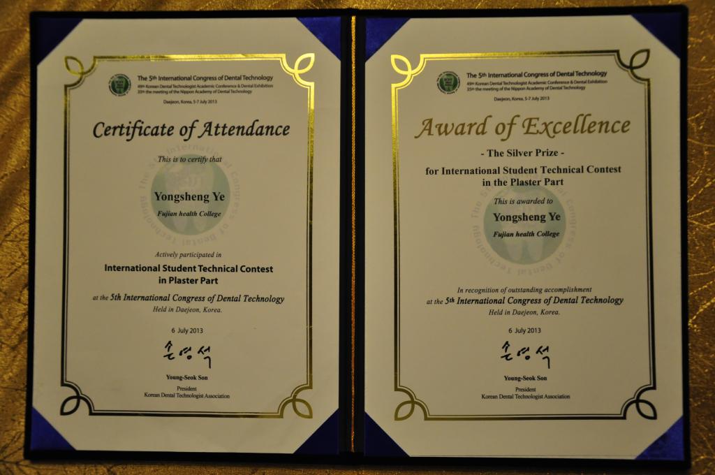 學(xué)生獲第五屆國際口腔技師學(xué)術(shù)大會(韓國)