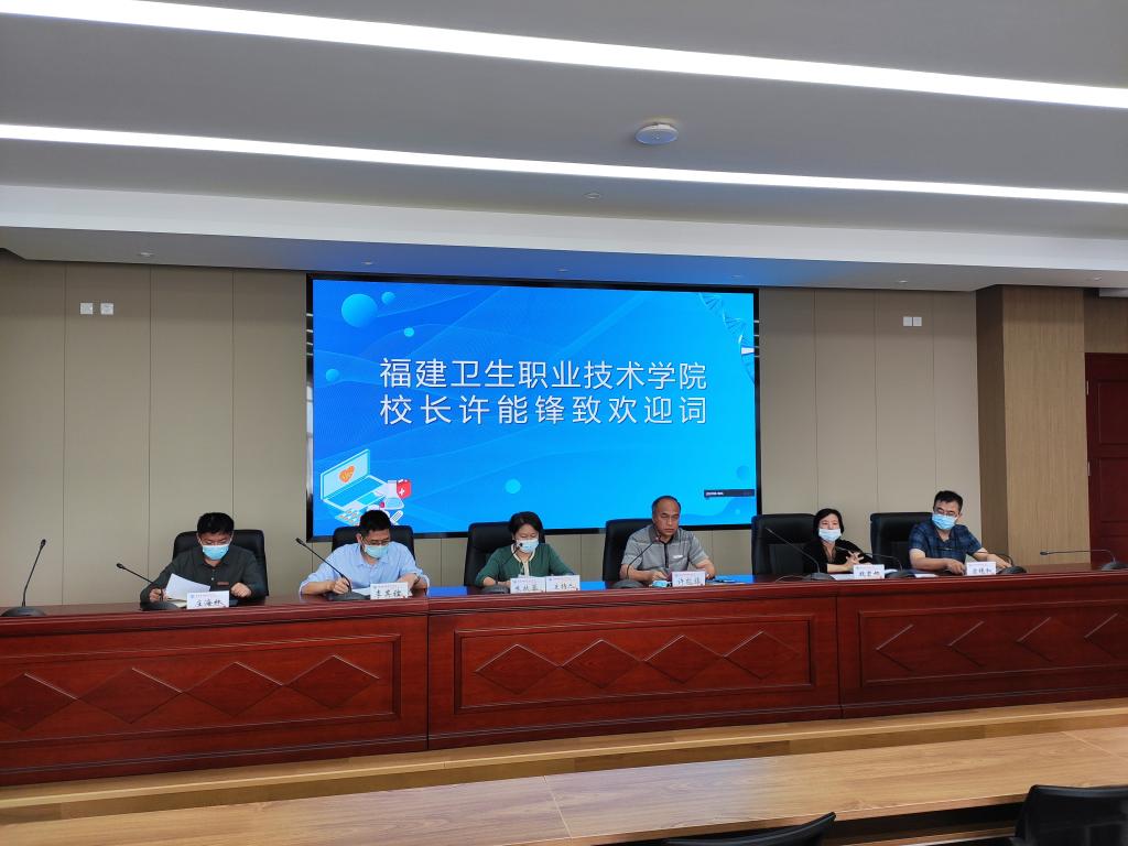 由于疫情原因,會議采取線上線下相結(jié)合的方式,主會場設(shè)在我校行政樓六樓會議室,校外參會人員以線上方式同步參會。福建省醫(yī)藥衛(wèi)生行業(yè)職業(yè)教育指導委員會常務副主任、校長許能鋒出席會議,教務處負責人魏碧娜、現(xiàn)代教育技術(shù)中心主任李其鏗、醫(yī)學技術(shù)系主任翁繩和、健康管理系主任莊海林、藥學院副院長李泳寧,以及本批各教材的主編、副主編及編寫人員共100余人參會。會議由副校長朱扶蓉主持。