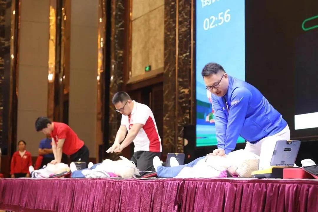 本次大賽以“救在校園”為主題,以教職員工紅十字救護員組隊,通過嚴格選拔參加大賽。比賽參照第六屆全國紅十字應(yīng)急救護大賽實操考核范圍及技術(shù)標(biāo)準(zhǔn),包含成人心肺復(fù)蘇(含AED使用)操作、創(chuàng)傷救護(左前臂出血現(xiàn)場止血包扎)實操兩項內(nèi)容,展示紅十字應(yīng)急救護培訓(xùn)“進校園”成效。