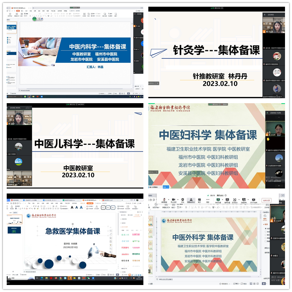 為進一步深化校院合作,促進醫(yī)教融合,落實協(xié)同育人,提升人才培養(yǎng)質(zhì)量,醫(yī)學院教師第三黨支部經(jīng)過數(shù)周的籌劃與準備,2月10日晚,帶領(lǐng)中醫(yī)專業(yè)、針推專業(yè)教師,聯(lián)合福州市中醫(yī)院、龍巖市中醫(yī)院、安溪縣中醫(yī)院相關(guān)教研組通過線上直播的方式開展集體備課。內(nèi)容涵蓋了2021級中醫(yī)專業(yè)、針推專業(yè)學生即將在各醫(yī)院學習的中醫(yī)內(nèi)科學、針灸學、中醫(yī)婦科學等臨床課程。