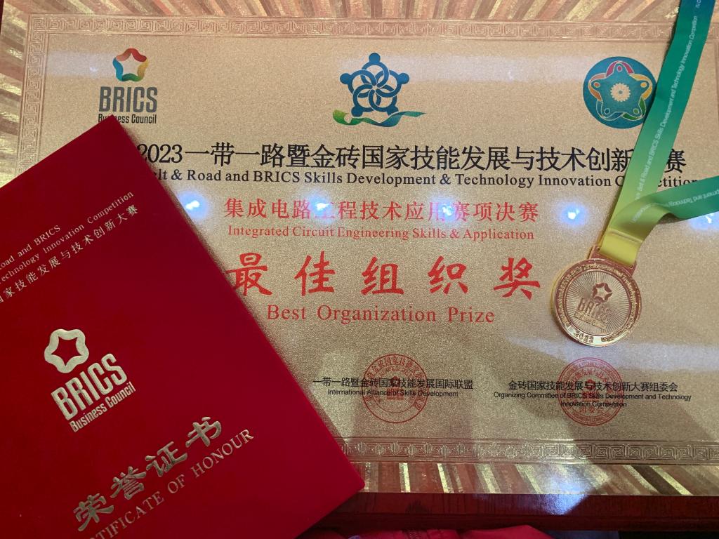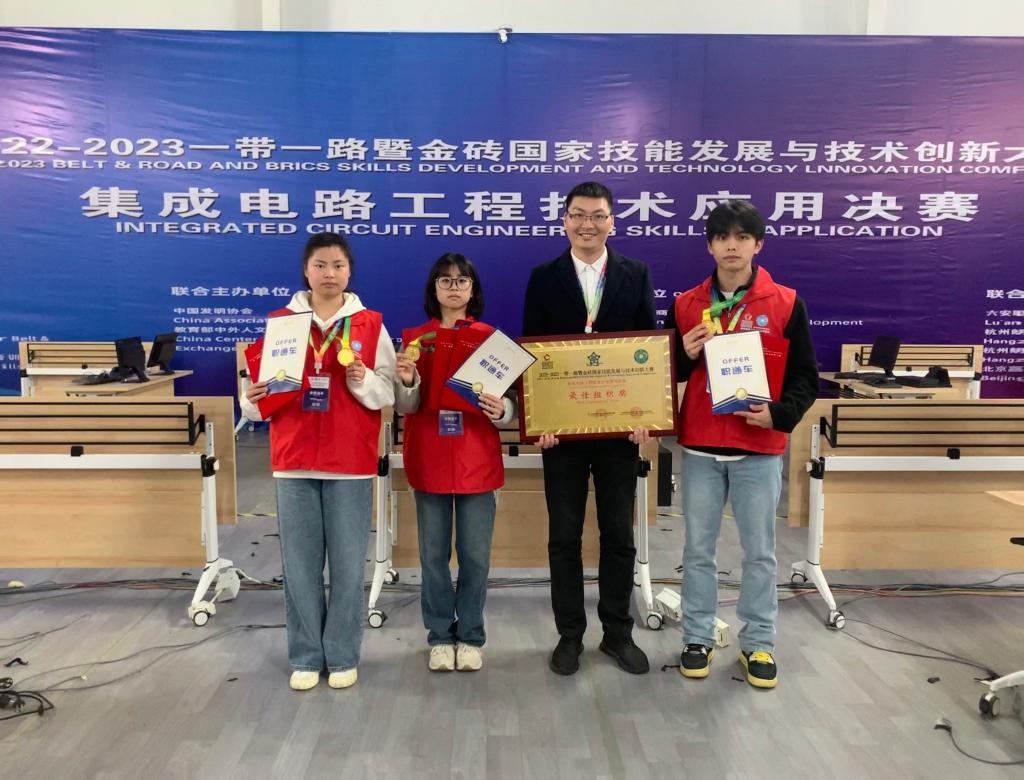 巔峰時刻,皋城對決。2023年3月19日至21日,2022-2023“一帶一路”暨金磚國家技能發(fā)展與技術(shù)創(chuàng)新大賽集成電路工程技術(shù)應(yīng)用賽項決賽在六安職業(yè)技術(shù)學(xué)院開賽。本次大賽由金磚國家工商理事會中方理事會、“一帶一路”暨金磚國家技能發(fā)展國際聯(lián)盟、中國科協(xié)“一帶一路”暨金磚國家技能發(fā)展與技術(shù)創(chuàng)新培訓(xùn)中心主辦,中國發(fā)明協(xié)會、教育部中外人文交流中心聯(lián)合主辦,來自全國12個省、市、自治區(qū)的50多支隊伍共聚皋城,展開激烈的角逐。我校醫(yī)學(xué)技術(shù)系21級智能醫(yī)療裝備技術(shù)專業(yè)楊彩佳、林冰玉,20級智能醫(yī)療裝備技術(shù)專業(yè)沈立濤三位同學(xué)組成的參賽隊喜獲一等獎(金牌)。我校獲得最佳組織獎,鐘偉雄、陳偉煒兩位指導(dǎo)老師獲得優(yōu)秀指導(dǎo)教師獎。我校是參加該賽事全國唯一的一所醫(yī)藥衛(wèi)生類學(xué)校。