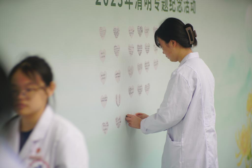 隨后,師生們向大體老師鞠躬、敬獻鮮花,并在追思墻上寄語留言。“大愛無言、感念在心!”“謝謝無言良師照亮醫(yī)學(xué)生前進的道路!”有力的筆跡,是每位同學(xué)心中的一份堅定,是獲得的一份力量!