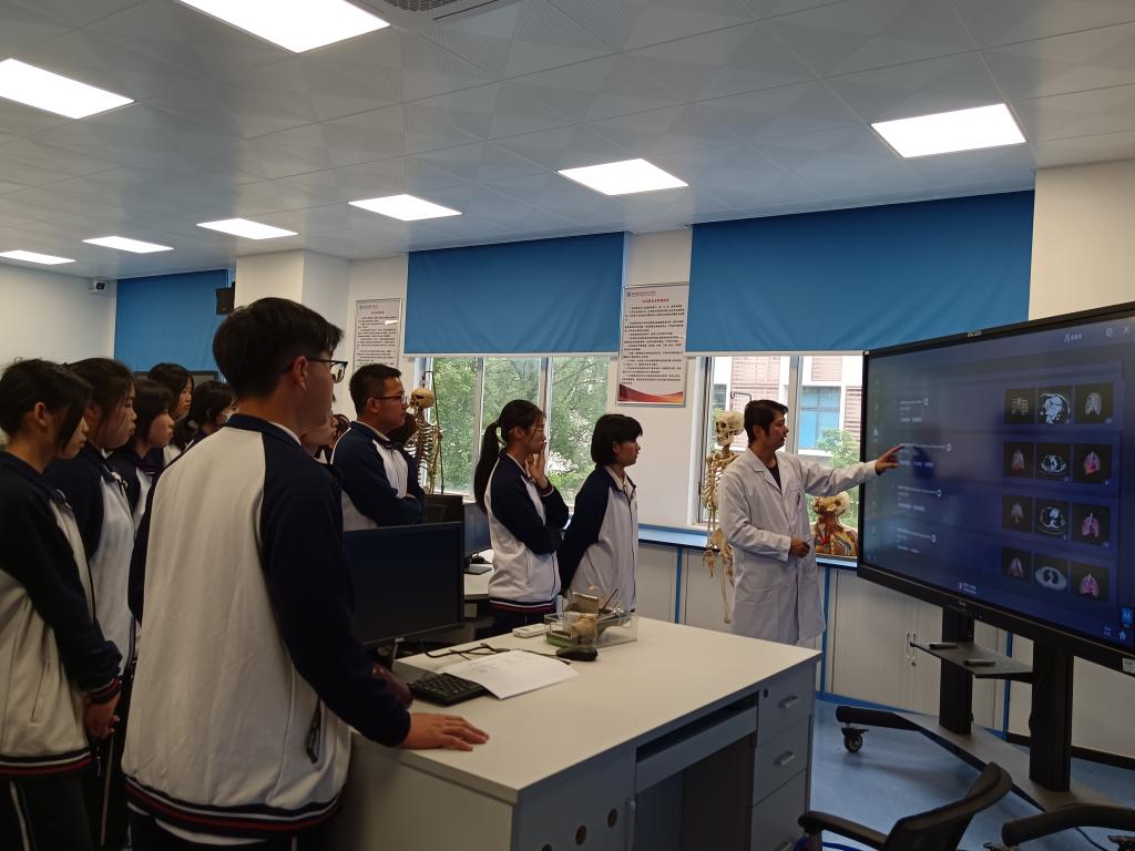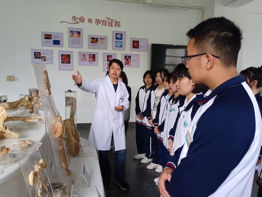 活動后,部分學(xué)生及閩侯縣職業(yè)中專學(xué)校師生代表參觀了解剖實訓(xùn)室。醫(yī)學(xué)院教師第二黨支部支委林加福老師作為志愿者引導(dǎo)講解形態(tài)學(xué)館標(biāo)本,帶學(xué)生體驗使用示教儀、數(shù)字人軟件。學(xué)生們被多樣化的輔助教學(xué)信息化技術(shù)深深吸引。林加福鼓勵閩侯職專學(xué)生努力學(xué)習(xí),歡迎大家今后報考我校繼續(xù)學(xué)習(xí)。