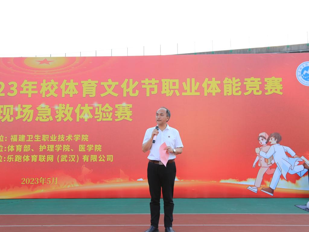 許能鋒在致辭中表示,開展職業(yè)體能比賽,對進(jìn)一步加強(qiáng)醫(yī)衛(wèi)健康類學(xué)生職業(yè)體能儲備意識,激發(fā)學(xué)生學(xué)業(yè)務(wù)、練技能的熱情,提高學(xué)生在未來工作中應(yīng)對突發(fā)事件的綜合處置能力具有重要意義。他預(yù)祝運(yùn)動員們在比賽中取得佳績,爭創(chuàng)專業(yè)技能和職業(yè)體能“雙一流”!