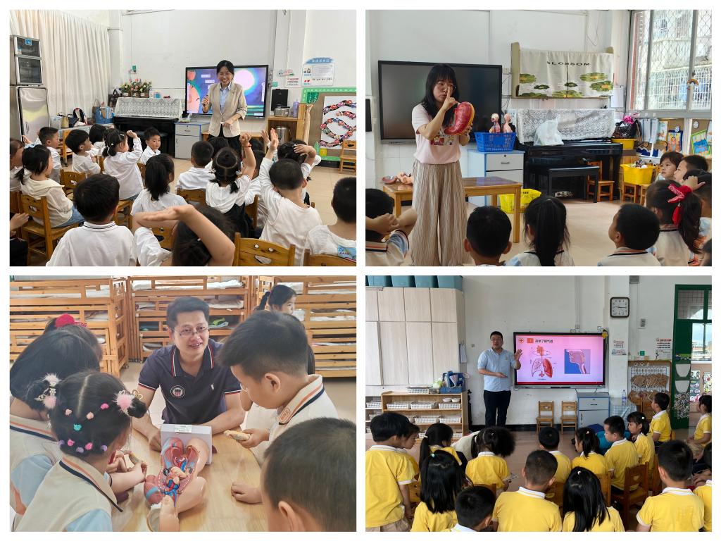 活動伊始,支部黨員教師在校健康科普青年講團(tuán)成員的協(xié)作下,從專業(yè)知識角度出發(fā),針對小班、中班、大班小朋友的年齡特點(diǎn)和理解程度,現(xiàn)場分班進(jìn)行繪本共讀、模型拼裝、模擬體驗(yàn)、急救知識宣教等內(nèi)容豐富的健康科普活動。