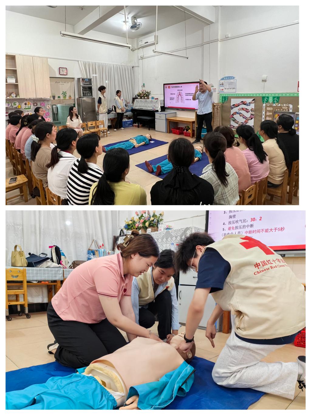 隨后,醫(yī)學(xué)院教師第二黨支部書記葉榕為中心幼兒園的教職工進(jìn)行急救培訓(xùn),內(nèi)容包含氣道異物梗阻的識別與現(xiàn)場救護(hù)及心肺復(fù)蘇,實(shí)用的專業(yè)知識讓大家收獲滿滿。