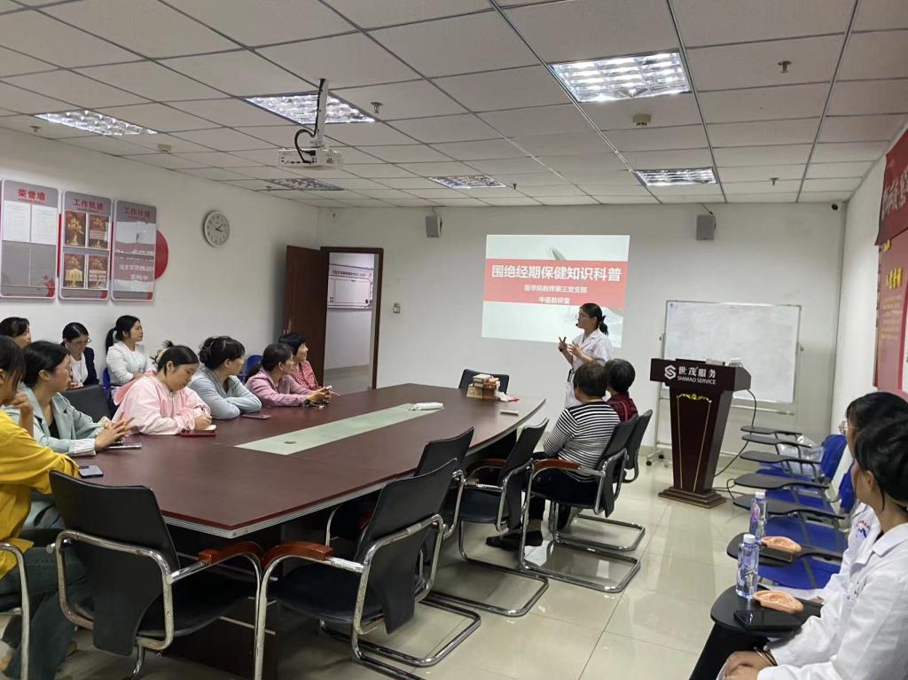 中醫(yī)學專業(yè)教師葉汝萍圍繞圍絕經(jīng)期女性的生理特點、臨床表現(xiàn)、心理變化、生活誤區(qū)等方面為居民答疑解惑,從精神心理、飲食、運動各方面介紹了緩解不適、預防疾病的具體方法,并結合中醫(yī)辨證,現(xiàn)場介紹、演示適合不同圍絕經(jīng)期女性的中醫(yī)藥特色保健方法,如耳穴壓豆、艾灸、穴位按摩等。
