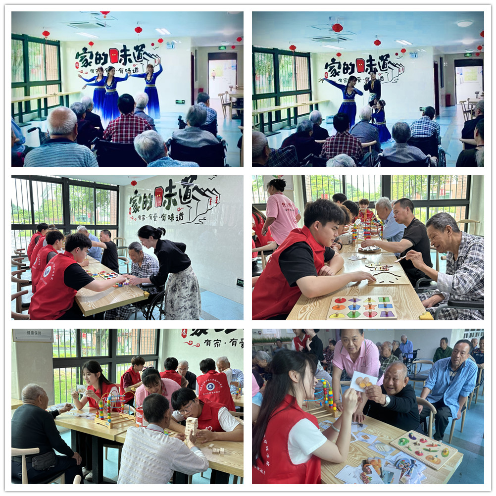 活動(dòng)伊始,由我校新疆維吾爾族學(xué)生組成的歌舞團(tuán)隊(duì),為長者們獻(xiàn)上了一場精彩的民族舞蹈表演。同學(xué)們與長者們親切互動(dòng),進(jìn)行水果卡片、繞珠、抓手指等一系列認(rèn)知訓(xùn)練小游戲,既鍛煉了長者們的反應(yīng)能力,又增進(jìn)了學(xué)生們對(duì)老年人需求的認(rèn)知與關(guān)愛之情,在實(shí)踐中豐富所學(xué),在學(xué)習(xí)中促進(jìn)成長。