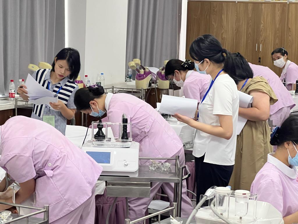 本次考核分為理論考試與實踐操作兩個環(huán)節(jié),依據(jù)國家職業(yè)技能標準、職業(yè)技能等級認定規(guī)范,充分考察考生的美容光電操作知識、面部護理手法、身體護理手法、禮儀溝通等綜合能力。