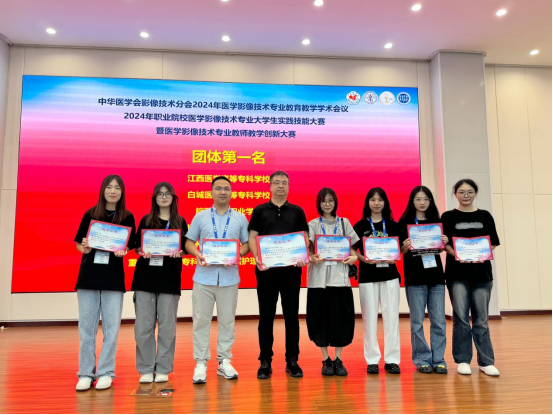 9月19日至22日,2024年職業(yè)院校醫(yī)學(xué)影像技術(shù)專(zhuān)業(yè)大學(xué)生實(shí)踐技能大賽在江西上饒舉行,我校醫(yī)學(xué)技術(shù)與工程學(xué)院醫(yī)學(xué)影像技術(shù)專(zhuān)業(yè)獲得團(tuán)體一等獎(jiǎng),并獲單項(xiàng)一等獎(jiǎng)三項(xiàng)、三等獎(jiǎng)兩項(xiàng)的好成績(jī),杜世遠(yuǎn)、曾良成和吳沁三位老師獲得“優(yōu)秀指導(dǎo)教師”榮譽(yù)稱號(hào)。