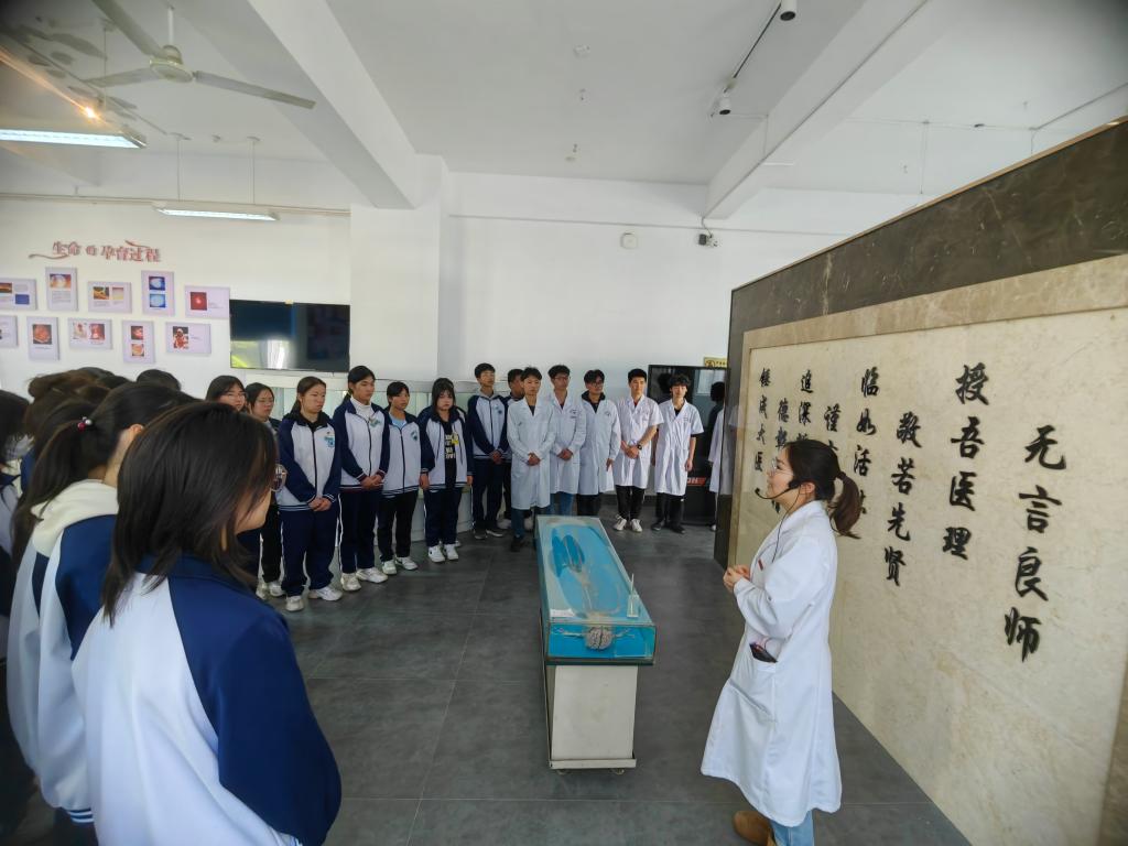 閩侯縣職業(yè)中專(zhuān)學(xué)校師生還參觀了人體形態(tài)科學(xué)館,姚瓊?cè)A老師細(xì)致地進(jìn)行標(biāo)本講解、健康宣教,帶領(lǐng)校外師生深入了解人體結(jié)構(gòu)知識(shí)。