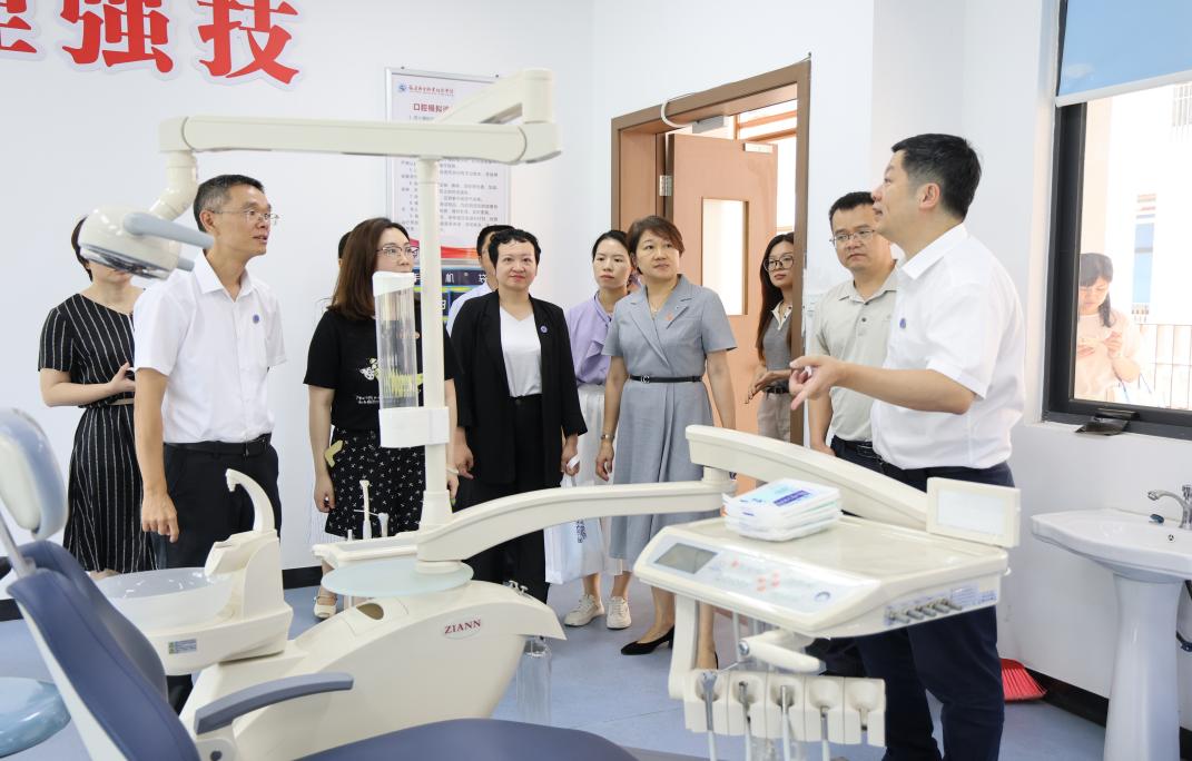 最后,朱扶蓉陪同張尉一行參觀了我校中醫(yī)藥文化館、醫(yī)學(xué)院口腔醫(yī)學(xué)專業(yè)等實(shí)訓(xùn)基地,并對(duì)我??谇会t(yī)學(xué)專業(yè)人才培養(yǎng)及口腔門診進(jìn)一步社會(huì)化運(yùn)營(yíng)與發(fā)展進(jìn)行初步的探討與展望。